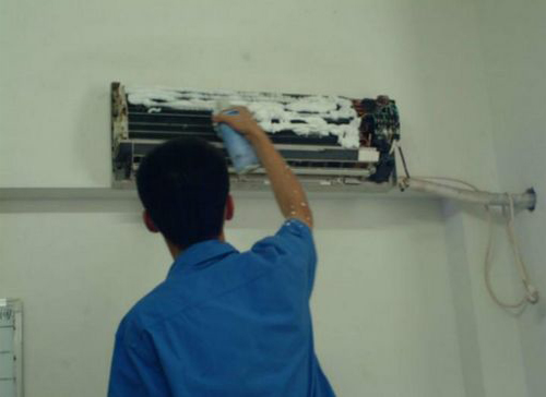 | 松原空调维修师傅给松原用户上门维修清洗空调。 |